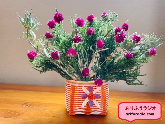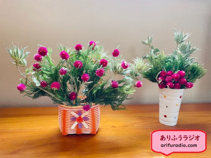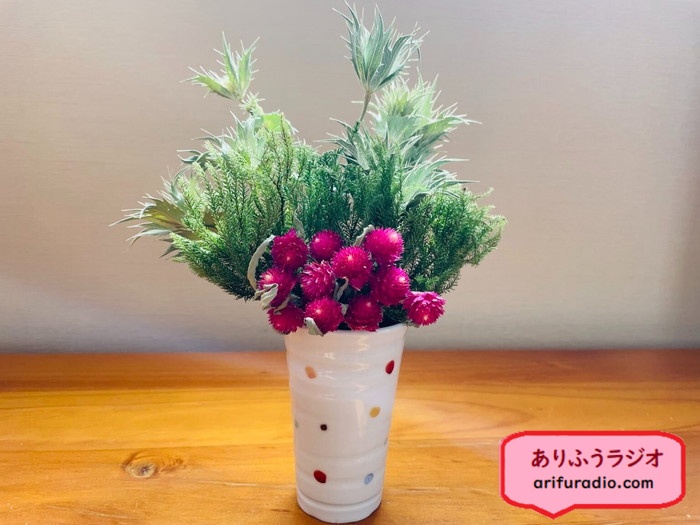 先日、八ヶ岳にスキーに行った娘からドライフラワーをお土産にもらいました。はてさてアレンジメントのセンスが無い私にどう飾れと…