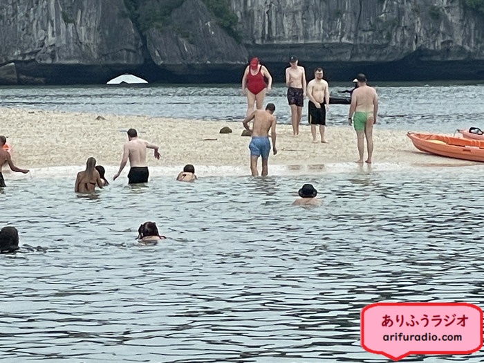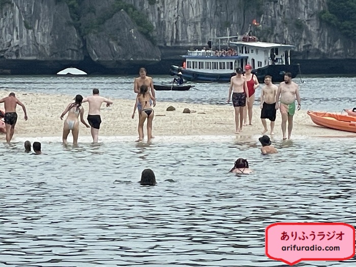 他の船からの観光客も上陸してきてビーチでコミュニケーションです。