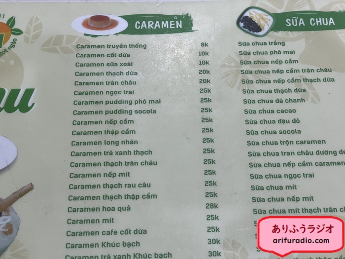 ドノーマルプリンは8,000VNDなので約50円ってところです。