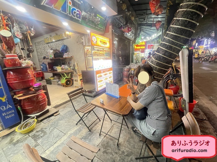 もう、テーブルで待ちますが歩道です。どの店も同じようなものですが。