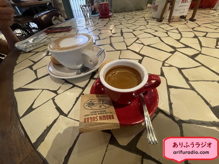 チーさんはカフェラテ、私はエスプレッソを頼みました。