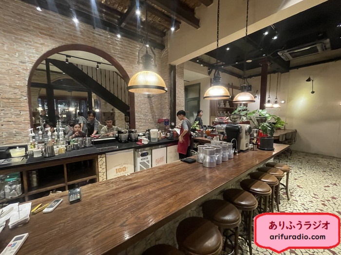 街中の食堂や歩道でプラ椅子で飲ませてくれるコーヒー店とは違い、写真だけ見ると渋谷とか横浜の店っていってもフーンって納得できそうな雰囲気です。