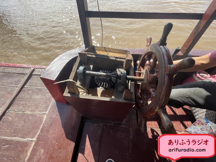 車ならハンドルに当たる、船の最重要な舵は年季の入った木製でした。