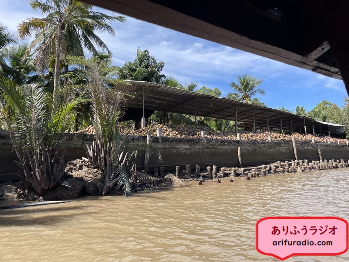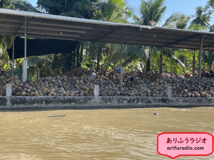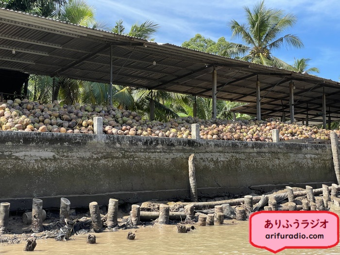 戻る途中で、またまた山のように積まれたココナッツの積み出し場を見つけました。