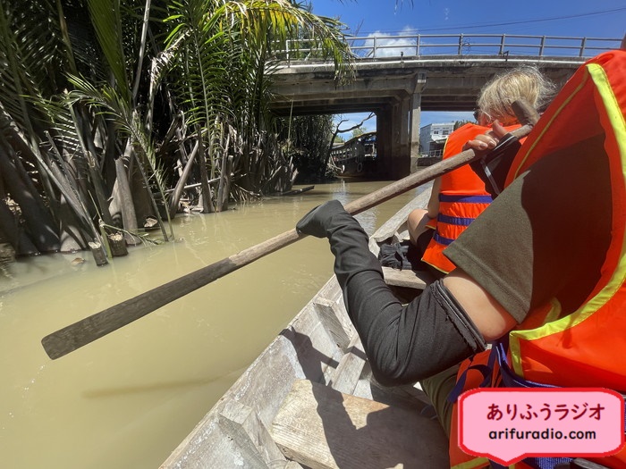 いよいよ手漕ぎボートで運河を移動