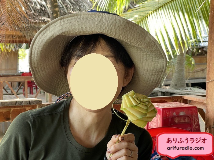 見かねたというか、流石に申し訳ないと思ったヴィさんが、水椰子の葉でこんなものを作ってチーさんのご機嫌を取ってくれました。