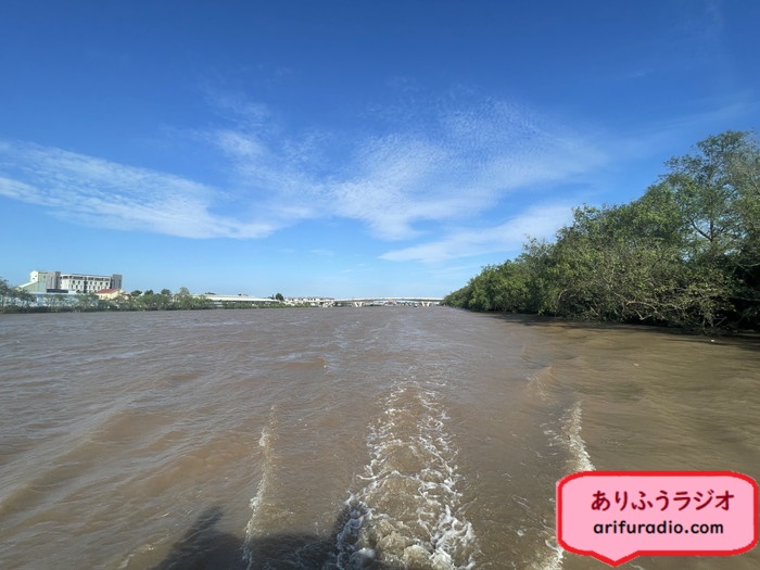 船はゆっくりと茶色く濁った川を上っていきます。船も川の流れもゆっくりで波もないので、ほんとにゆったり景色を眺めていられます。