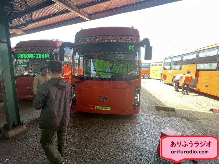 お迎えのシャトルバスは予約ごとに乗車するらしいのですが、呼び出ししているおじさんは当然ベトナム語で呼び出しているので、自分のバスが対象なのか全くわかりません。