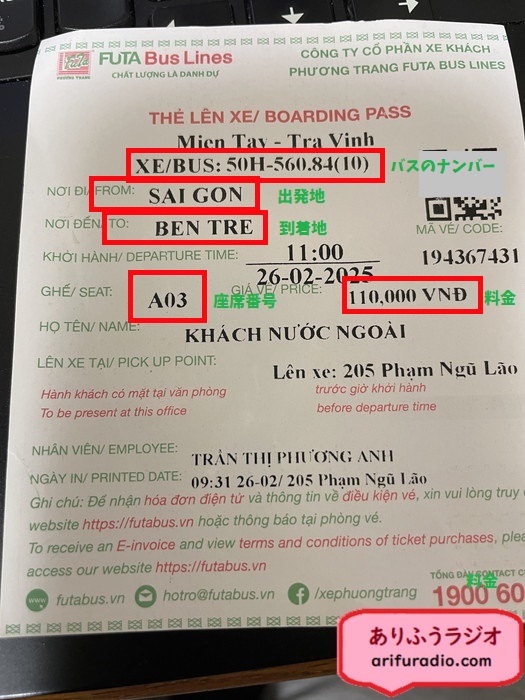 これでホーチミンとベンチェの間の2時間を往復しましたが、とても快適でした。