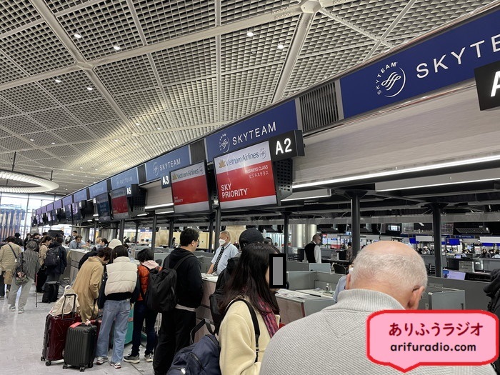 荷物検査は、チーさんがベトナムエアのビジネスクラスをアピールしたら、わかりにくく見つけられなかった優先入り口を教えてもらい、ここでもショートカットでき結果的には短時間で通過できました。