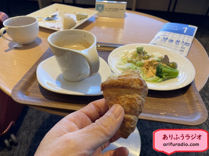 飛行機の中で食事が出るので、ここでは食べないと思ったけど、朝早くの出発でお腹が空いていたため、軽く食べておきました。