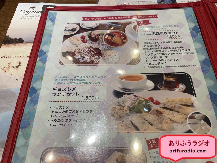 私は、安全を狙ってシシケバブになびきそうでしたが、「ギョズレメランチセット」にしました。