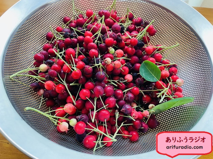 さて、この季節、今年も庭のジューンベリーの木に実がつきました。鳥や虫に食べられないうちにと、ちょっと早めに摘み取りました(ヒーさんが)