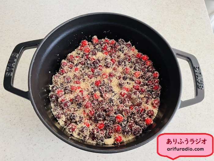 ジューンベリーの重さの40%、220gのてんさい糖を使いました。