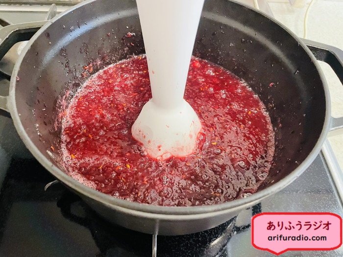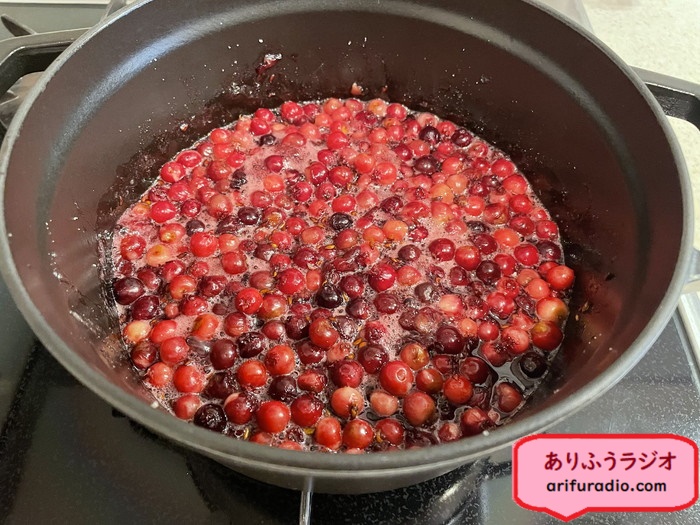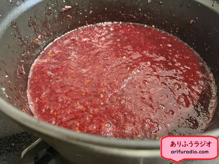 ジャムのようなトロミが好みなら煮込み時間を長めに、さらさらソースのような出来上がりが好みならこの段階で出来上がりです。