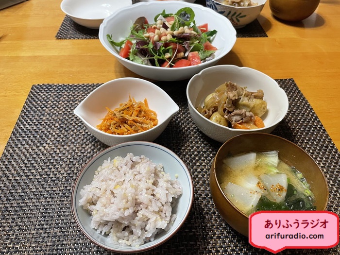 ヒーさんがリモートワークの日も、なるべく買い物に出かけることなくお昼を済ませたいと思い、日々ワンプレート&一品料理でとど〜んと食卓に並べています。