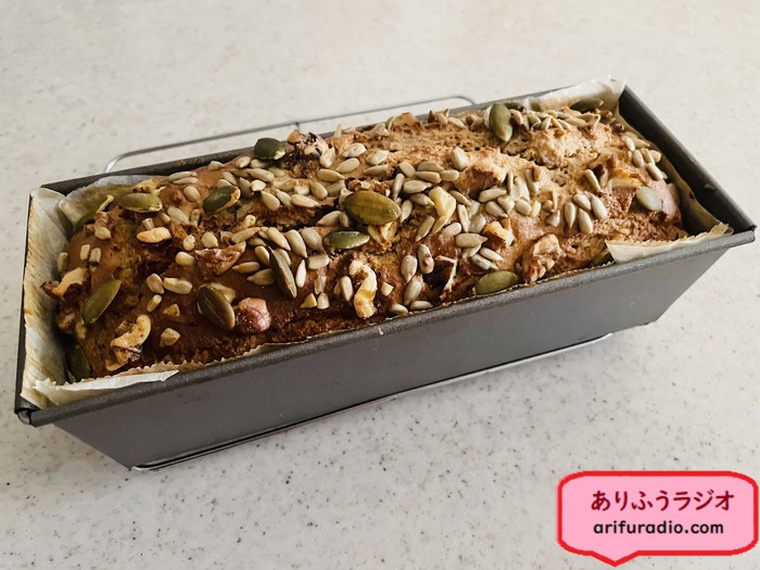 アーモンド、クルミ、カボチャの種、ひまわりの種をトッピングして焼きました。
