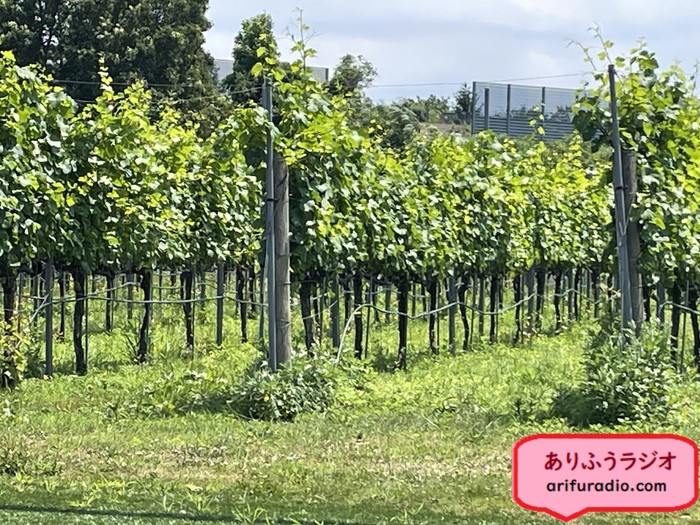 外には葡萄畑が広がって緑が鮮やか。まだ小さな葡萄の実がタワワに実っていました。