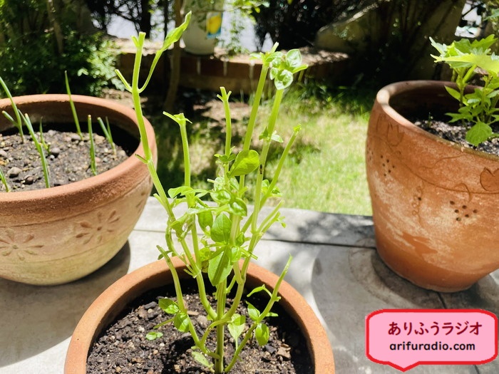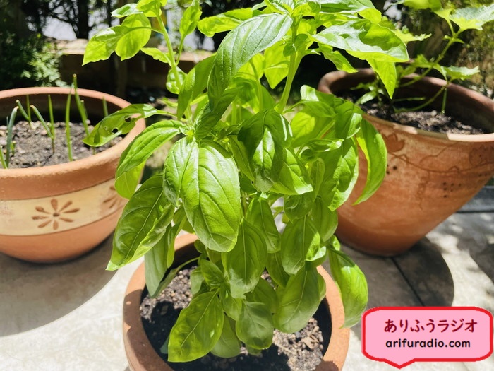 以前、桑高農園から取り寄せた野菜セットに入っていたバジル、鉢植えにしたらこんなに大きくなりました🌿