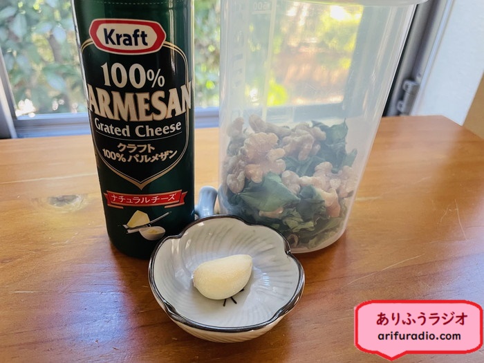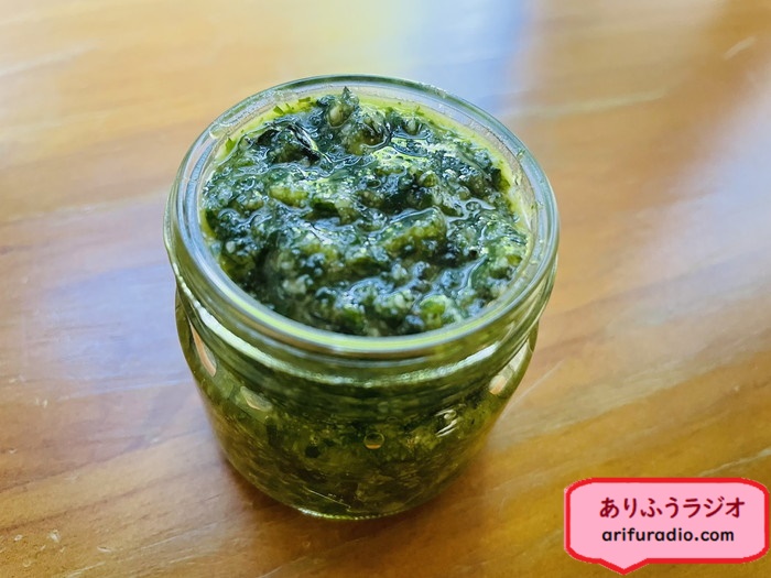 オリーブオイルもたっぷり入れてミキサーでガーっとやったら出来上がり〜