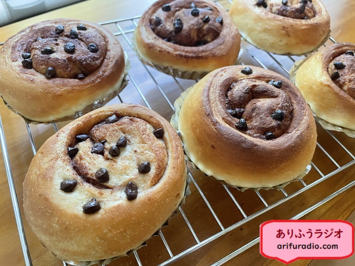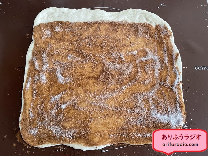 シナモンとグラニュー糖をたっぷり敷き詰めてロールしました。