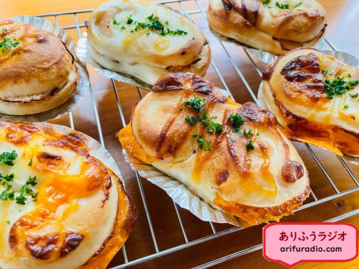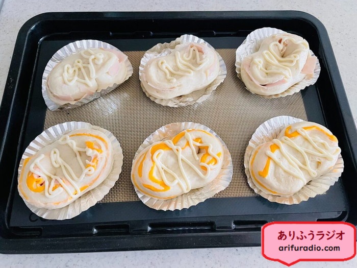二次発酵後、マヨネーズをトッピングして焼きました。