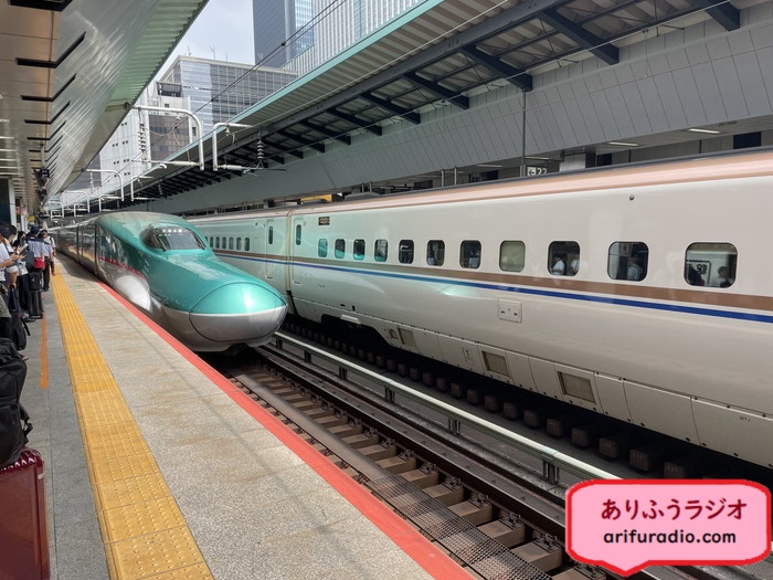 普段は東海道新幹線のブルーの車両しか見ていないので、この色の新幹線は久しぶりでした。