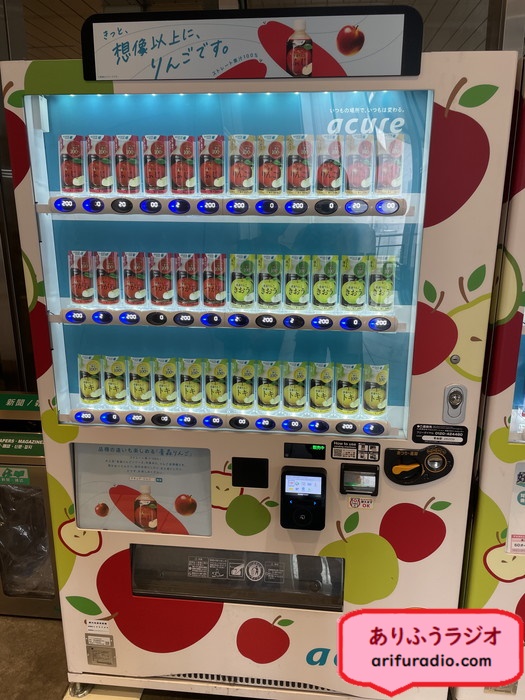 青森駅に着くと、チーさんがリンゴジュースだけの販売機があるはずと言うので、そんなの都市伝説にきまってんじゃん、とか言ってたら、あった!