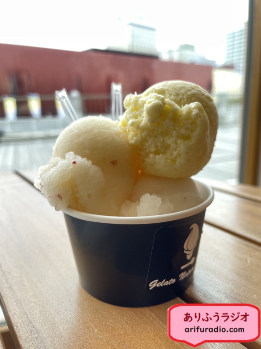 次はジェラートです。「Gelato natura due(ジェラートナチュレ)」手作りジェラートの店です。