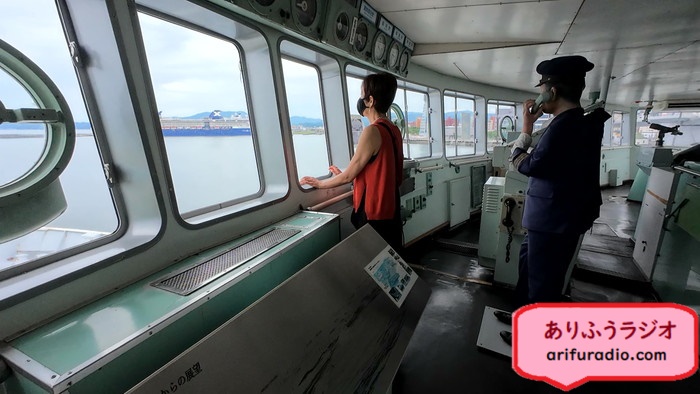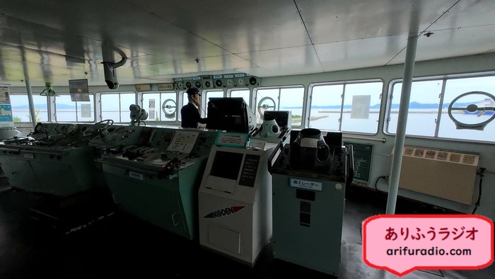 操舵室にも入れて、大きな船の広い操舵室は氷川丸以来です。