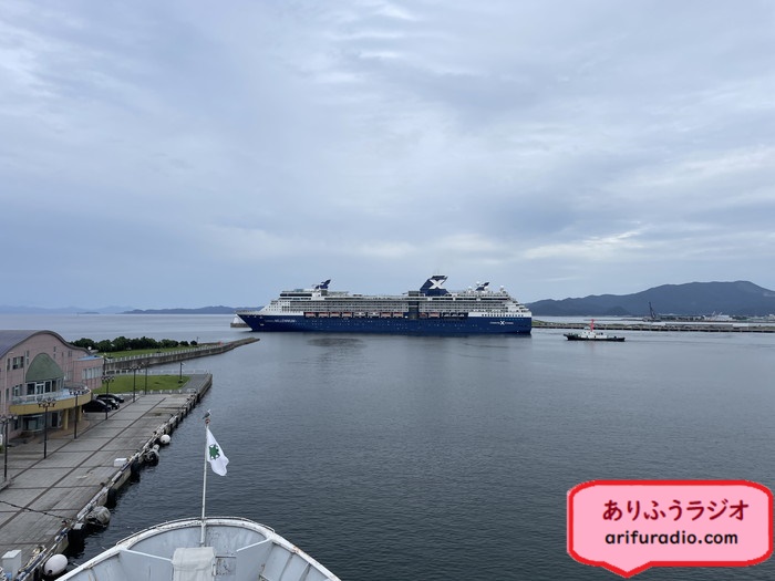 桟橋に停泊していた外国客船がゆっくり出航していきました。