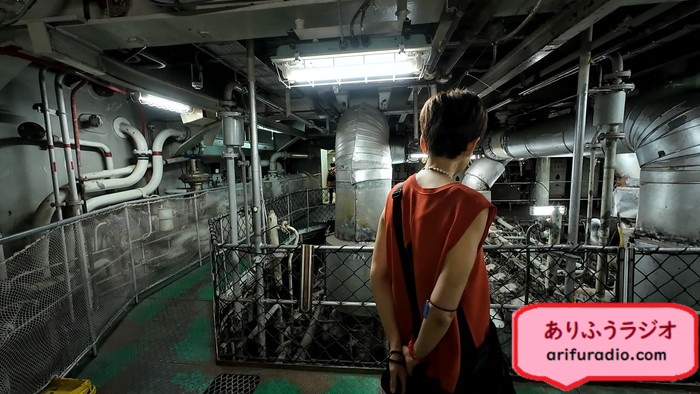 甲板から機関室へ降りて行くと、普段見ることがない船の機関室を見学できます。