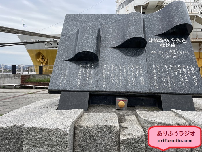 船の外に出ると「津軽海峡冬景色」のモニュメントがあり、そこで石川さゆりの歌が流れていました。