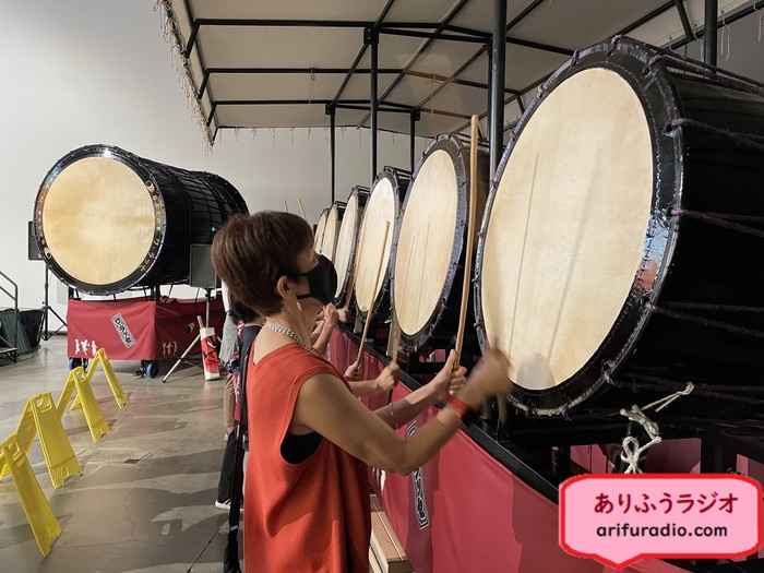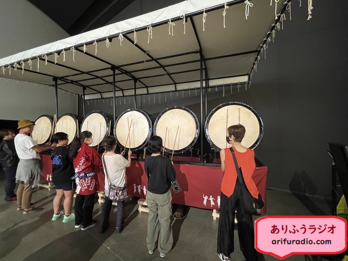 お囃子の実演が終わった後は、太鼓や鈴を実際にお囃子に合わせてやらせてもらえます。