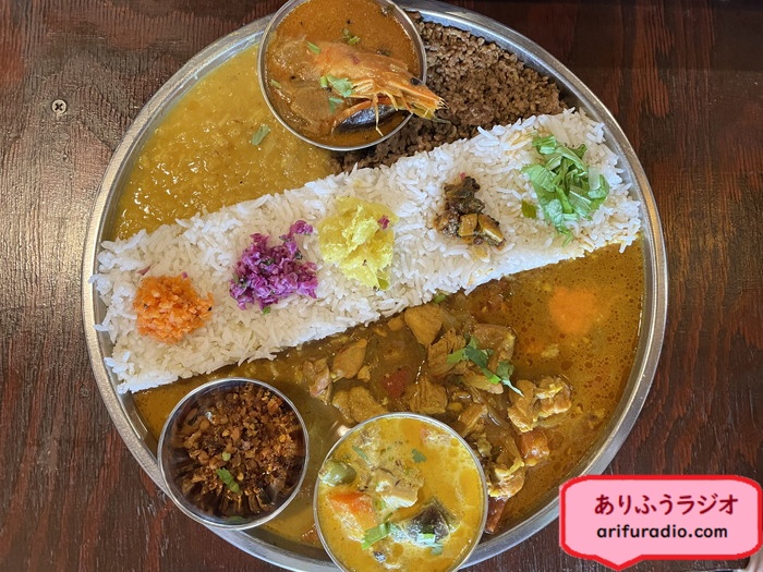 カレー3種とトッピング2つくらいがいいですよということで、チーさんとそれぞれ好きなものを選びました。
