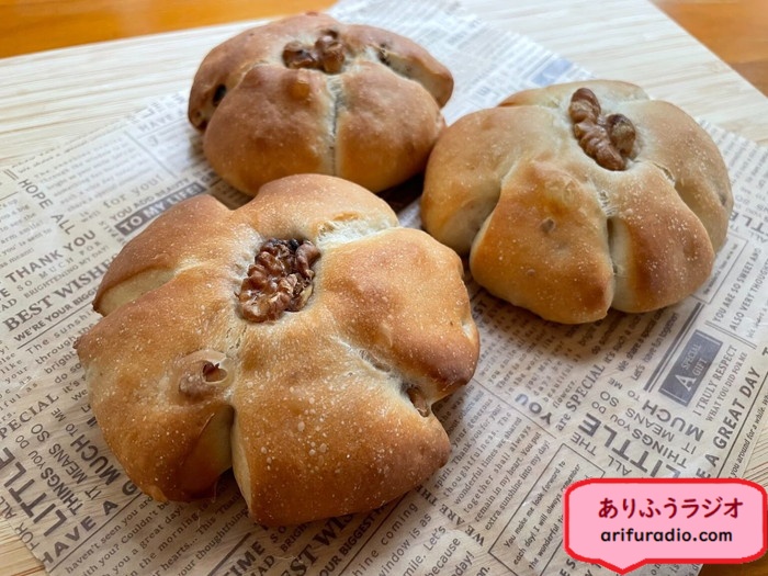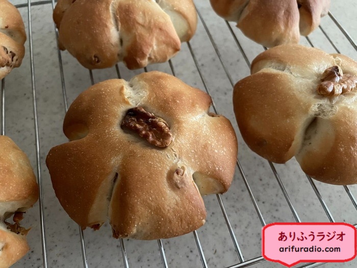 ローストしたクルミをたっぷりと生地に混ぜ込みました。