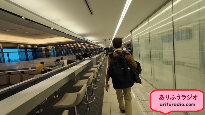 飲み物やスナックはラウンジにあるので、買ったらラウンジへ移動です。