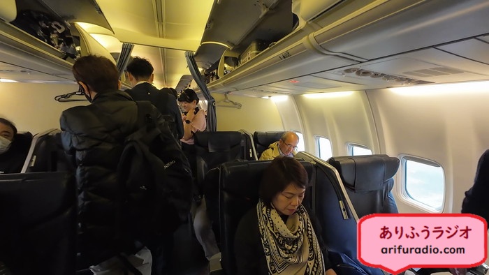 ぎりぎりまでチェックインを控えて隣の席が埋まるかどうかを注視していて、埋まったら逃げようと考えていましたが、最後まで真ん中の席は埋まることなく、3人掛けをどこかのサラリーマンと二人で座るというラッキー状態となりました。