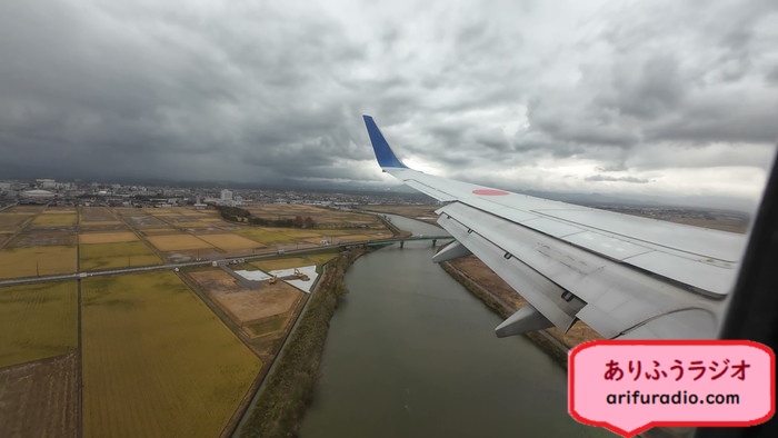 朝の羽田は混雑しているようで、25分ほど遅れて離陸しましたが、小松空港の到着は6分遅れという追い上げ飛行となりました。
