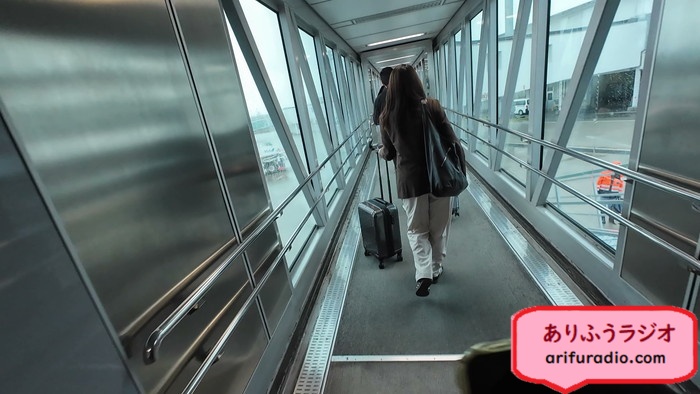 飛行機から降りて歩いていくと、優先降機しているチーさんが待ちくたびれている顔して待っていました。