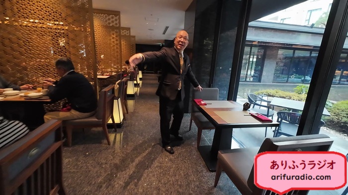 ルーム番号を伝えて案内されたのが、これも超ラッキーなことに中庭に面した席でした。