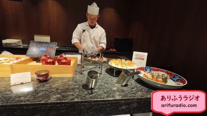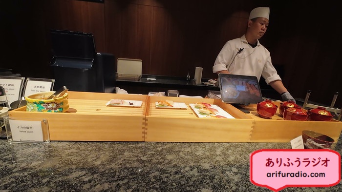 寿司カウンターでは、職人さんがお寿司を握ってくれています。