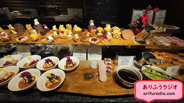 やばいですねぇ。スィーツコーナーは種類がたくさんあってどれも食べたいけど、ここにたどり着けるか?!