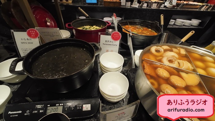 金沢おでんと治部煮は前の日にラウンジで食べたけど、もう一度食べたい。