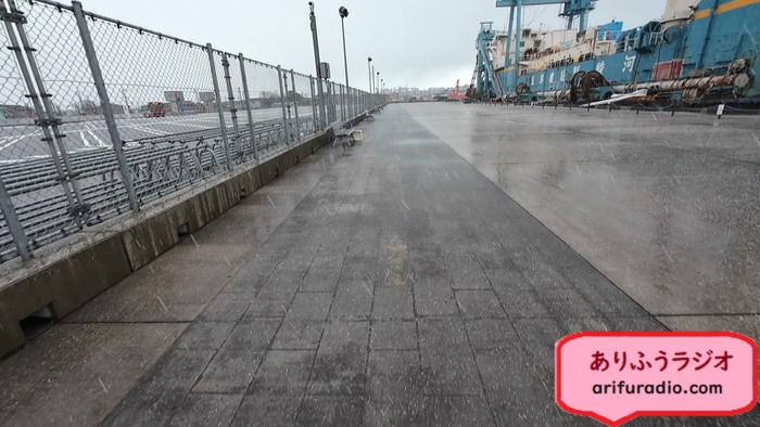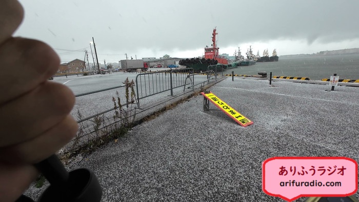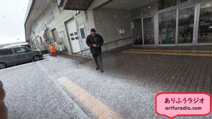 バスで「金沢港フェリーターミナル」に着いて、「金沢港いきいき魚市」へ歩き出した途端に、霙がポツポツ降ってきました。