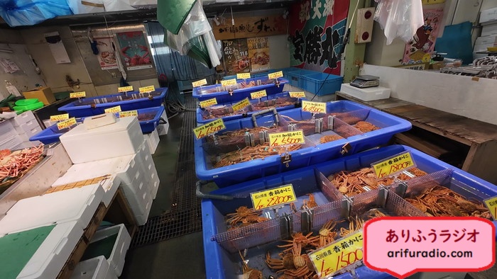 ここで娘夫婦に「加能ガニ」を1杯、自宅用には「香箱カニ」を購入してそれぞれクール便で送る手配をして「金沢港いきいき魚市」を後にしました。