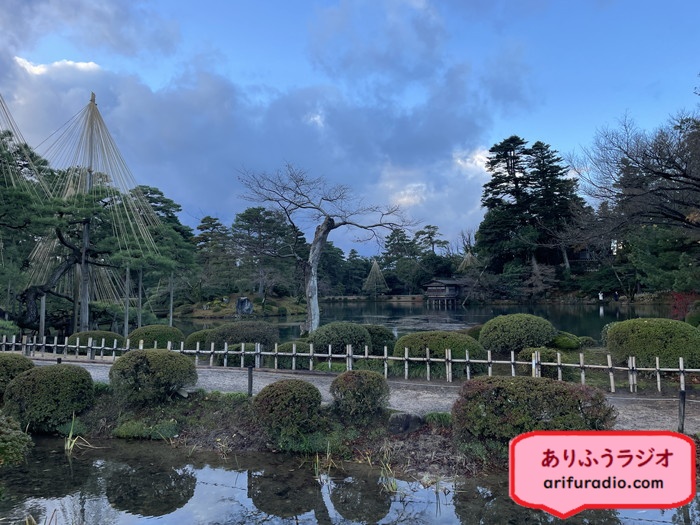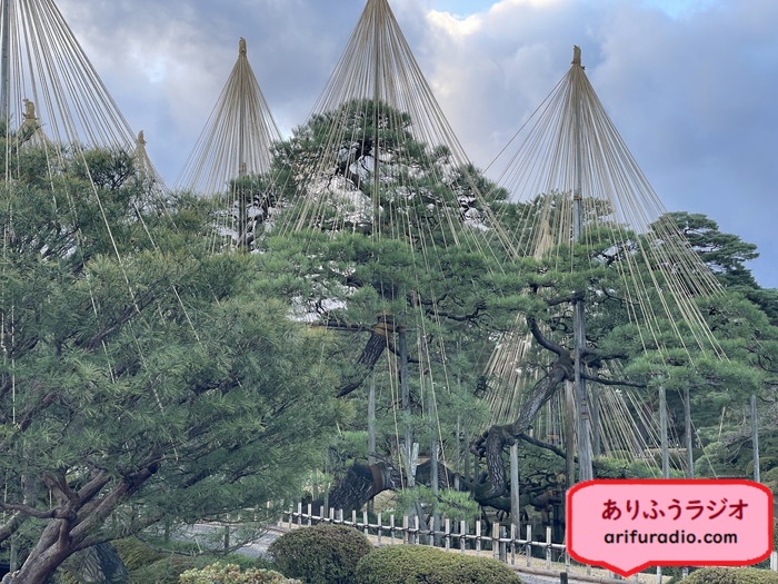 冬の雪の重さに枝が折れないように気のてっぺんから雪吊りという兼六園ならではの冬の風物詩が見られました。