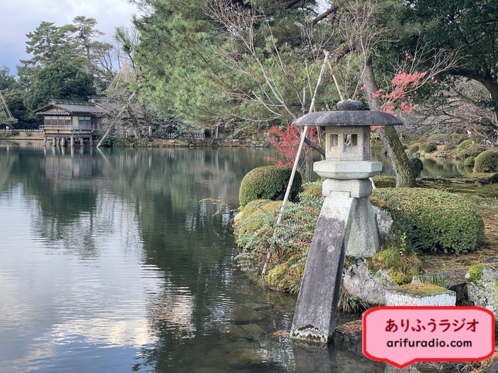 そして、有名な徽軫灯籠(ことじとうろう)も独占で見ることができました。