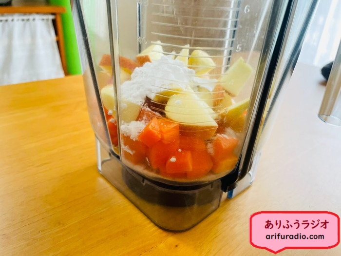 人参とりんごの甘みでも充分ですが、メイプルシロップやハチミツをかけても美味しかったです。