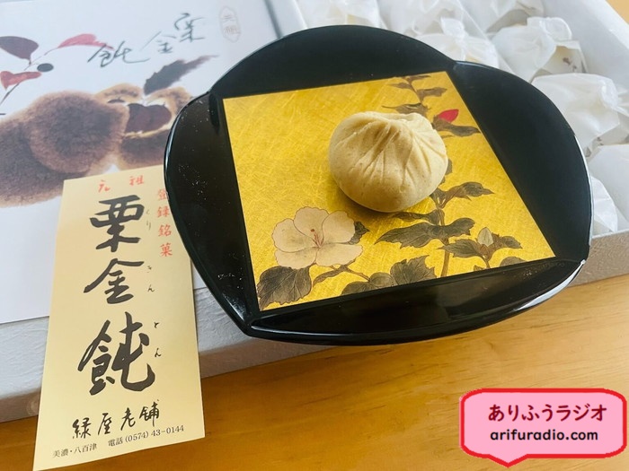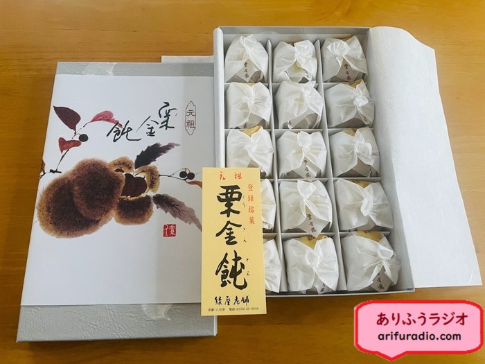 返礼品でいただいた栗きんとんは「緑屋老舗」という和菓子屋さんのものでした。